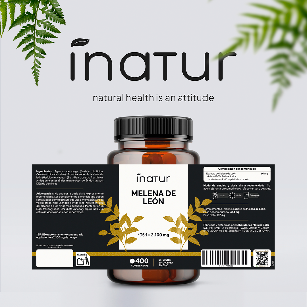 - 🧠 RENDIMIENTO COGNITIVO: Extracto natural de Melena de León (Hericium erinaceus) 35:1, equivalente a 2100 mg por comprimido. Apoya la memoria, la concentración y la claridad mental.